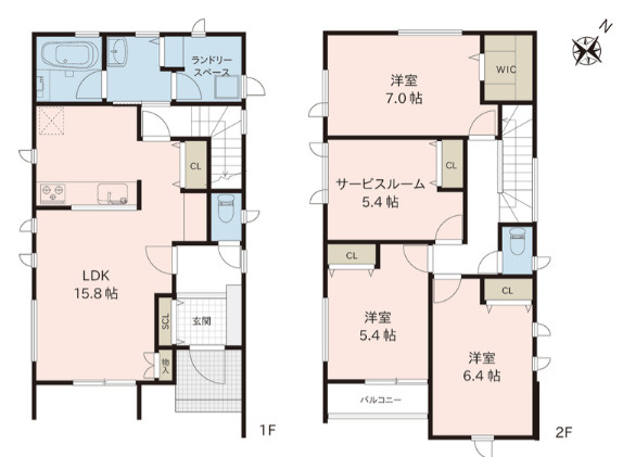 3LDK+S+ランドリースペースの間取りです 駐車スペース2台可!