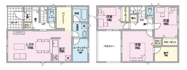 3LDKS+パントリー+ユーティリティルームの間取り、駐車スペース2台可です('ω')ノ